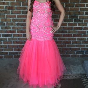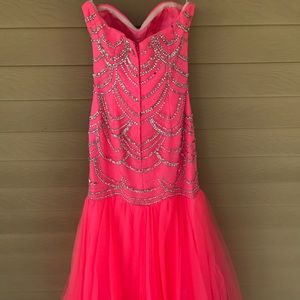 Hot pink strapless dress with rhinestones on top. Only worn once in perfect condition.