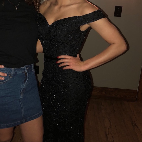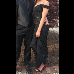 Beautiful off the shoulder prom dress. I wore this dress for approx. 3 hours. Zero damage or missing sequins/beads. Feel free to comment and make offers!!