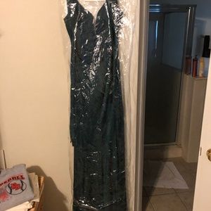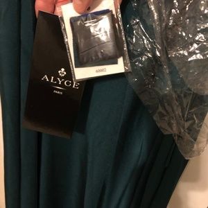 Form fitting mermaid/trumpet style Alyce Paris prom dress. Brand new, never been worn still in the plastic. Size 8. Pine colored and made of stretch crepe material for easy movement.