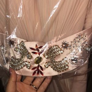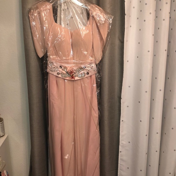 Light Pink With Beading. Sleeves were taken in but can be restored to original size. Built in Bra that can be removed as well. I will be taking it to be dry cleaned before shipping it off.