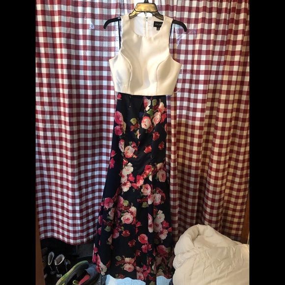 Two piece prom dress worn once! It is a size 6 but fits a little smaller and is in great condition!