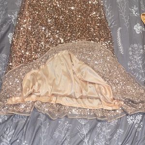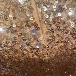 Dusty Rose / light pink prom dress purchased from PromGirl. Size two , but runs large. For reference, I am 5’2 and normally wear a size 4 or 27 in pants. This dress has never been altered and is long with a slight train. The sequins glisten and cover the dress, but aren’t itchy.