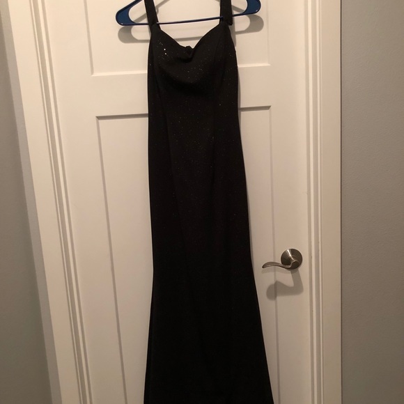 Black prom dress with little gold sparkles. Had a little work done on it, but it’s in good condition!