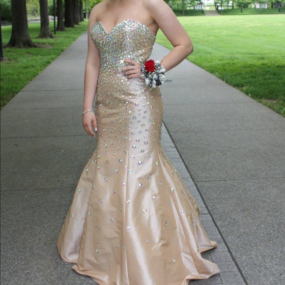 Champagne mermaid style prom dress!