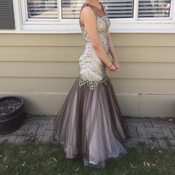 Beautiful mermaid style prom dress. Worn twice. In amazing condition. There is one small snag in the mesh on the back but it is hardly noticeable. Originally purchased for over $500. Willing to negotiate price