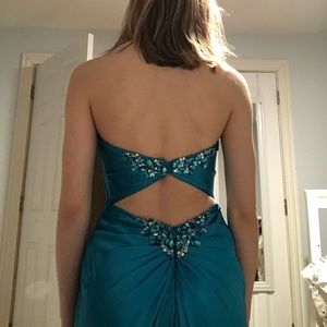 Fitted teal prom dress