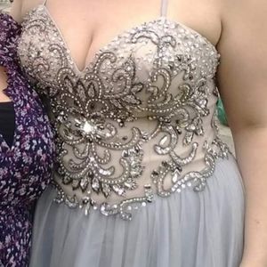 Beautiful slate blue/grey gown with full skirt. Beading on top is stunning. Spaghetti criss cross strap for extra support. Worn once.