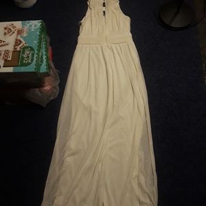 White glitter prom dress. Beutiful halter top neckline. Floor length gown