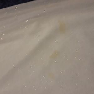 Small discoloration spot but is not noticeable when being worn