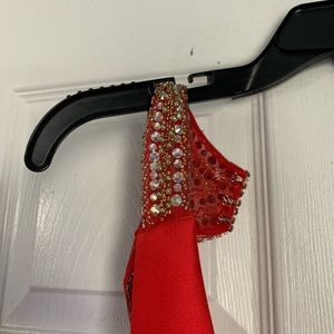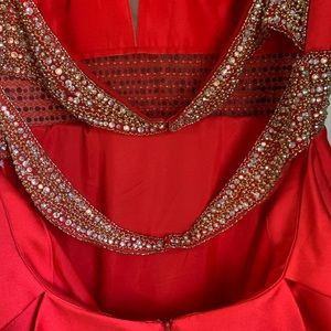 Women’s red dress. Long and puffy. I wore it for my senior prom about two years ago and it’s been in my closet ever since. Worn twice, once when trying it on and then again at prom. It has pockets!