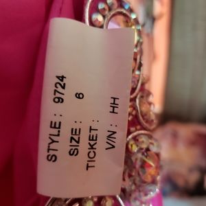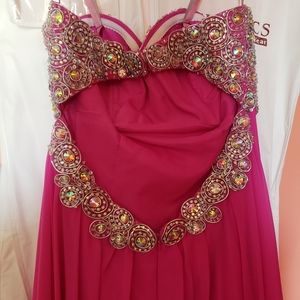 Long Prom Dress. Fusia colored. Size 6. Strapless. Has a small train that follows behind.