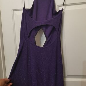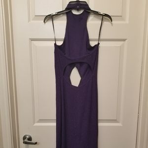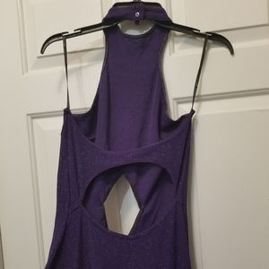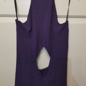 Long, Purple, Shimmering, Backless, Thigh High Split on both sides, Diamond shape cut out on stomach.