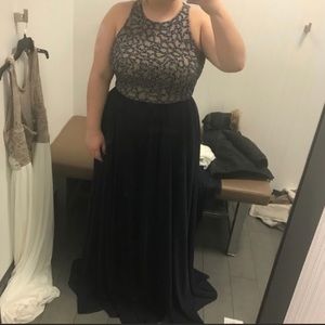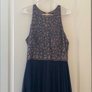 Been worn a couple times. Dry cleaned. In perfect condition. Slit in front (last pic shows).
