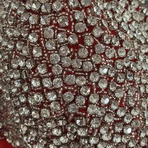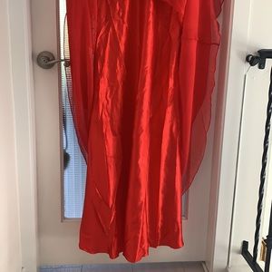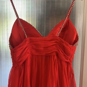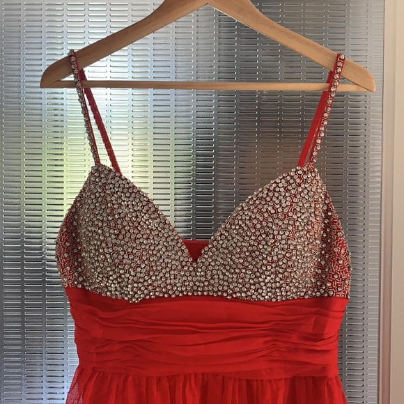 Beautiful bedazzled Prom dress!!! Red with satin layer under. Beautiful bustier with diamonds and beads even along the strap. Purchased in a boutique store New York City