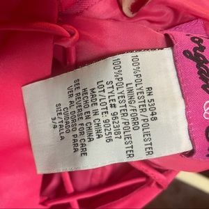 Worn once but has been in storage. Could use some care. some wear on under arm area. dress is 100% polyester with a lining. Size 3/4
