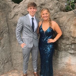 This was my junior year prom dress & I loved it. I don’t have a use for it anymore, & it’s taking up space. I’m 5’3 and I am a size 8! I only wore it one time & it’s in great condition!