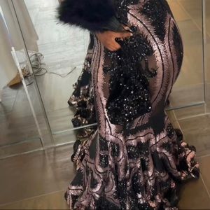This is a head turner statement piece is custom made it fits 14/16 Women color is a purple rose gold color can be worn with bra and panties see threw in certain spots I wore a bra and spandex shorts or may wear onesie short romper because I don’t want to show to much skin which eveyone said I could of went without either way it’s stunning if and have any questions fill free to message me I’m open to reasonable offers only worn it once open to offers
