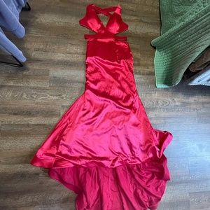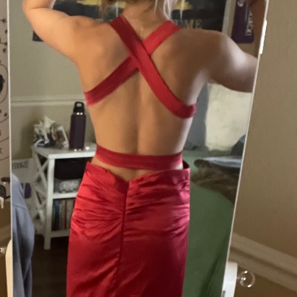 Red Shimmery backless prom dress