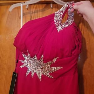 Beautiful red prom dress. NEVER WORN. Tag still on it. size 12 with a lace up back. Truly a beautiful dress, reds just not my color