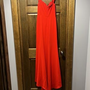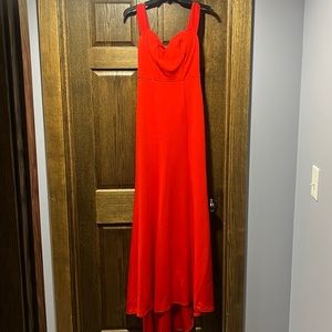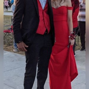 red prom dress, off the shoulder, size 3/4, zip up back, worn once, stretchy, super comfortable, soft