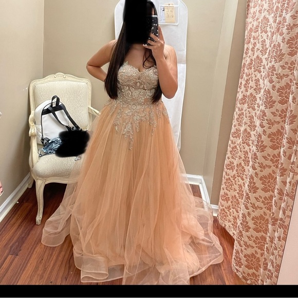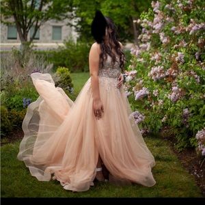 Size 10 La Femme Fashion Prom dress originally payed $540 asking $350 or best offer. Dress does have pockets and straps where added on but can easily takes off if not wanted. Only worn once and has no tears or stains.