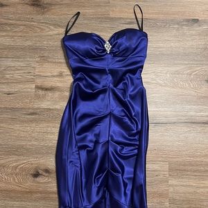 Elegant, beautiful violet prom dress. Long, formal, tight to the body to show those curves!