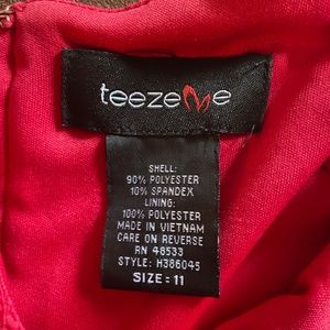 Long red form fitting dress