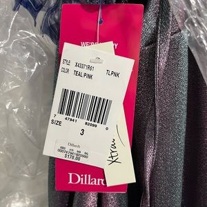 Lace up back, POCKETS! Slit in front, multi color shimmer, new with tags.