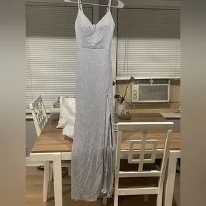 Wore once to prom in 2023. Sparkles fall off like crazy but very pretty. Size 1. Got from JC Penney.