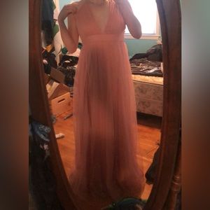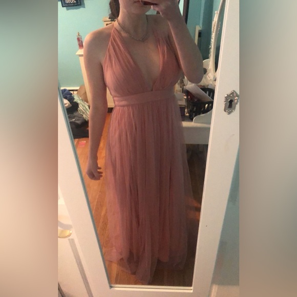 Baby blush pink prom dress Worn once. size large however the band under the breasts does not stretch so it fits more as a medium.