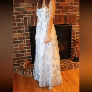 @coolgal346 i don’t have a pic when it’s on but i have a pic of just the back of the dress. length would fit for someone about 5’6 ish
