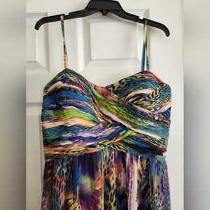 prom dress worn 1x - straps have been tacked and can be undone to make to desired length. they can also be easily removed via tailoring for a strapless look. please see pictures for sizing details (chest, hips, length, current strap length). light weight material, purple lining. size 18w.