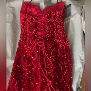 Cinderella Divine red sequin maxi dress with slit on side and ties from the back to adjust however you like. Worn once but in perfect condition with no rips or anything! Can fit from XXS,XS, and S.