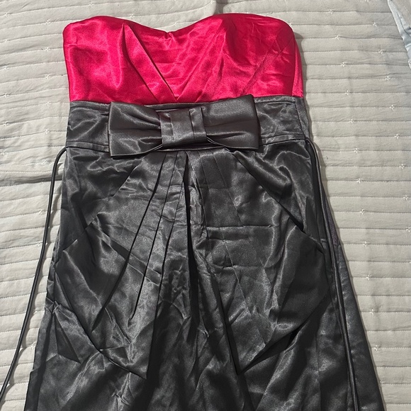 Juniors size 11 pink/grey short strapless prom dress with bow and pockets
