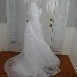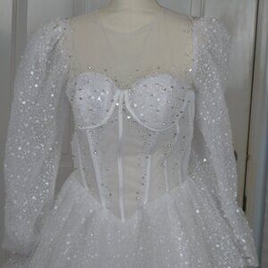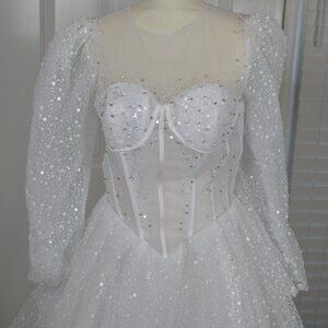 Prom Dress Ball Gown Quinceanera White Sparkly Sz 0 2 4 SEE MEASUREMENTS NWT