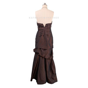 Prom Dress Maxi Gown M Brown Glam Strapless Mermaid Pleat Mother Tie Classic
