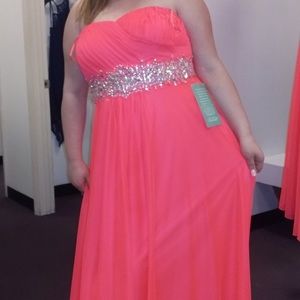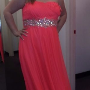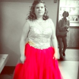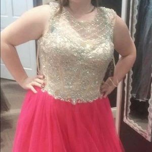 Prom Dresses: Pink one was wore 1x bought from Raelynns Boutique its says 3x but fits like a 14-16. Second dress is brand new. Never worn. Bought at J.C.Penny