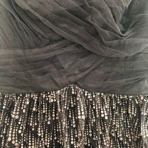 Originally bought at Davids Bridal for prom. I am 5’2”, so it was a little long, but with heals it was perfect. In perfect condition!! the little gem pieces really make it pop.