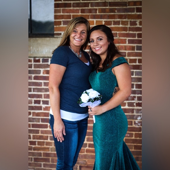 Gorgeous dress literally worn one time. Stretchy so can fit 4-6 or can be taken in to fit smaller. Super comfortable. Make an offer! This beauty does not deserve to be in the back of my closet!