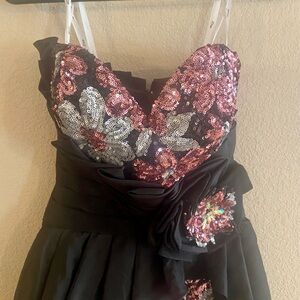 One of the clasp on the back is a bit loose but can be sewn back easily. See pic closely. Other than that this dress is in great preowned condition. There are thousands of sequins. There are none missing that I can see. No rips, stains, holes, or tears. I’ve included the web listing as the lighting does not showcase just how gorgeous this dress is!