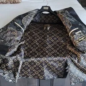 Son wore one time to prom last year literally for 3 hrs hate to sell it but no one to wear it or pass down too. Would look really nice with just black slacks.
