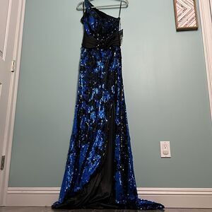 Prom One Shoulder Black Mermaid Dress by Alyce Paris 6036 NWT