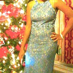 Prom/Special event time!! Ice Blue lace gown with attached slip . lace has sparkle in it so when lighting hits it and it is gorgeous