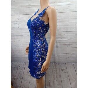 Prom Vienna beaded Lace dress Sz 6 Knee Length Sleeveless Back see-through