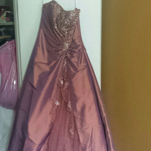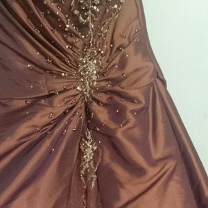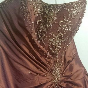 Brand new never worn A-line dress it's a metallic copper dress size 16..I bout it for 380 selling for only 150.00.. it comes with straps or can be worn as tube top dress