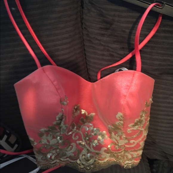 Beautiful corral prom/ homecoming dress sequence 2 piece corset and skirt size 3-4 will fit a size 2 only worn once