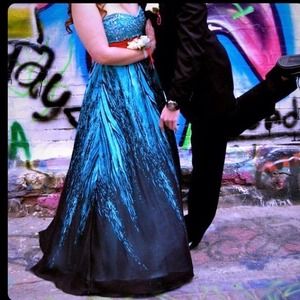 Corset back designer dress! Only worn once and it's in really good condition! The ONLY thing wrong with it is a top loop of the corset is ripped (see in pictures), but it's an easy fix!