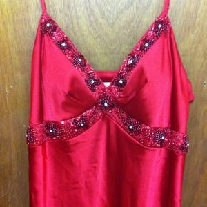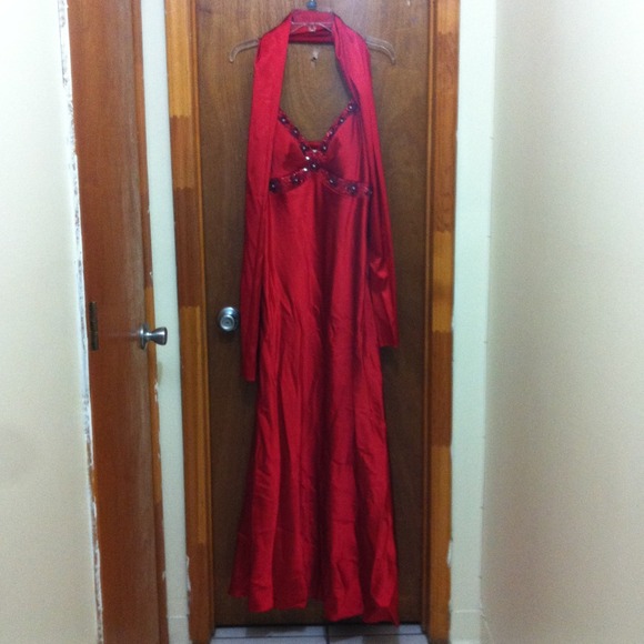 Red prom dress beautiful bead work only used once.