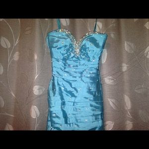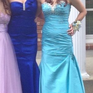 Beautiful light blue fit and flat prom dress! Only worn once! Any questions don't be afraid to ask! Willing to negotiate pricing!