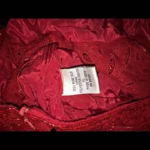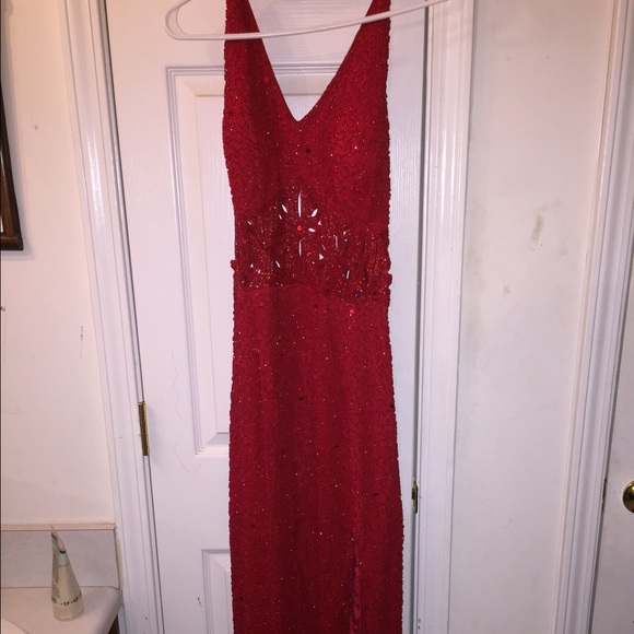 Red prom dress. XL (24-26in waist) 5-6 feet long. Has a slit at the front bottom of the dress. It's in really good condition.